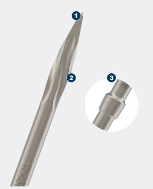 Vida útil hasta 1,5 veces más larga que un cincel puntiagudo SDS max-3C de Bosch.