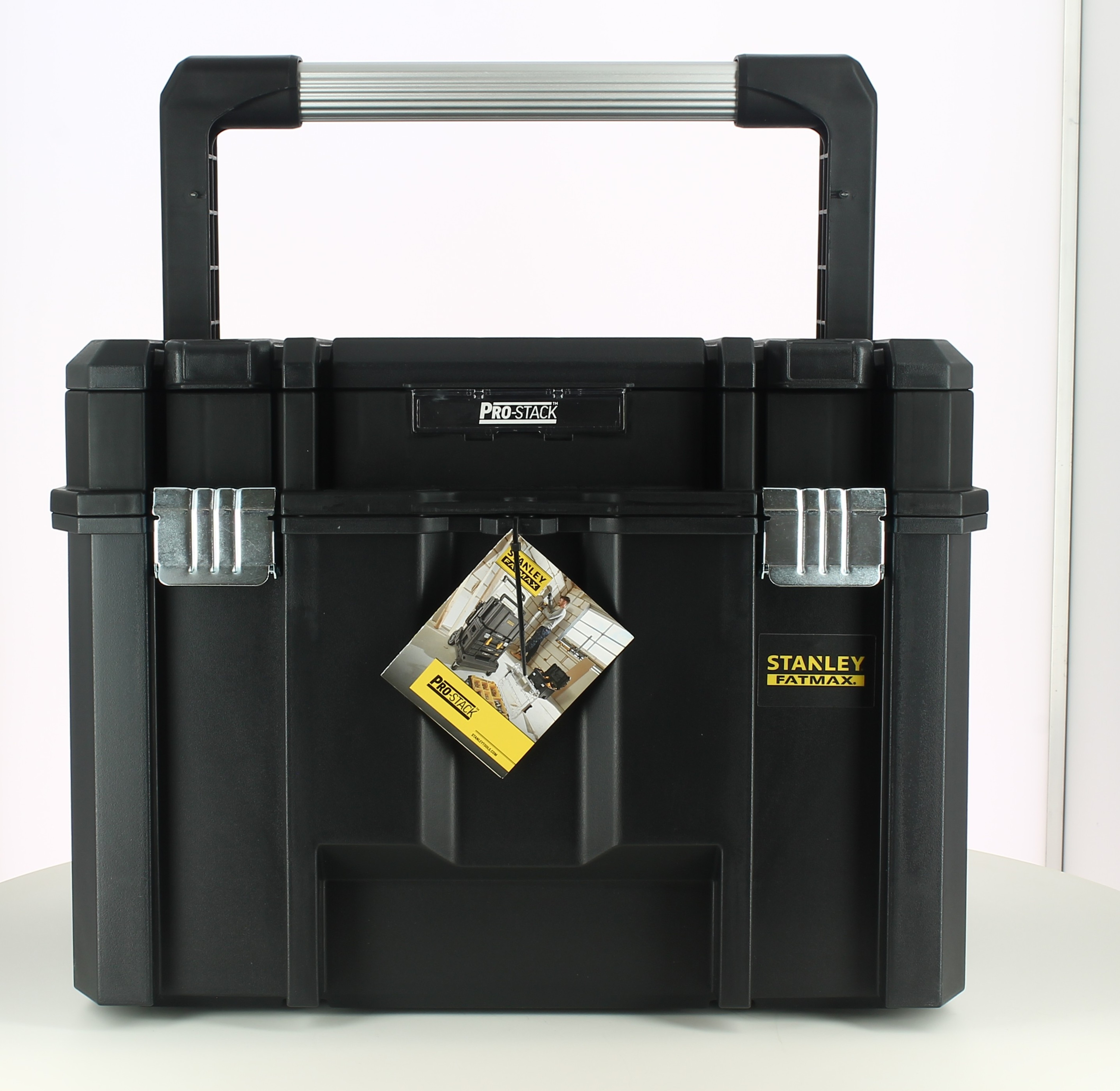 Caja de herramientas de gran volumen Stanley FATMAX PRO-STACK , ideal para transportar herramientas eléctricas y equipos voluminosos de forma práctica y segura.