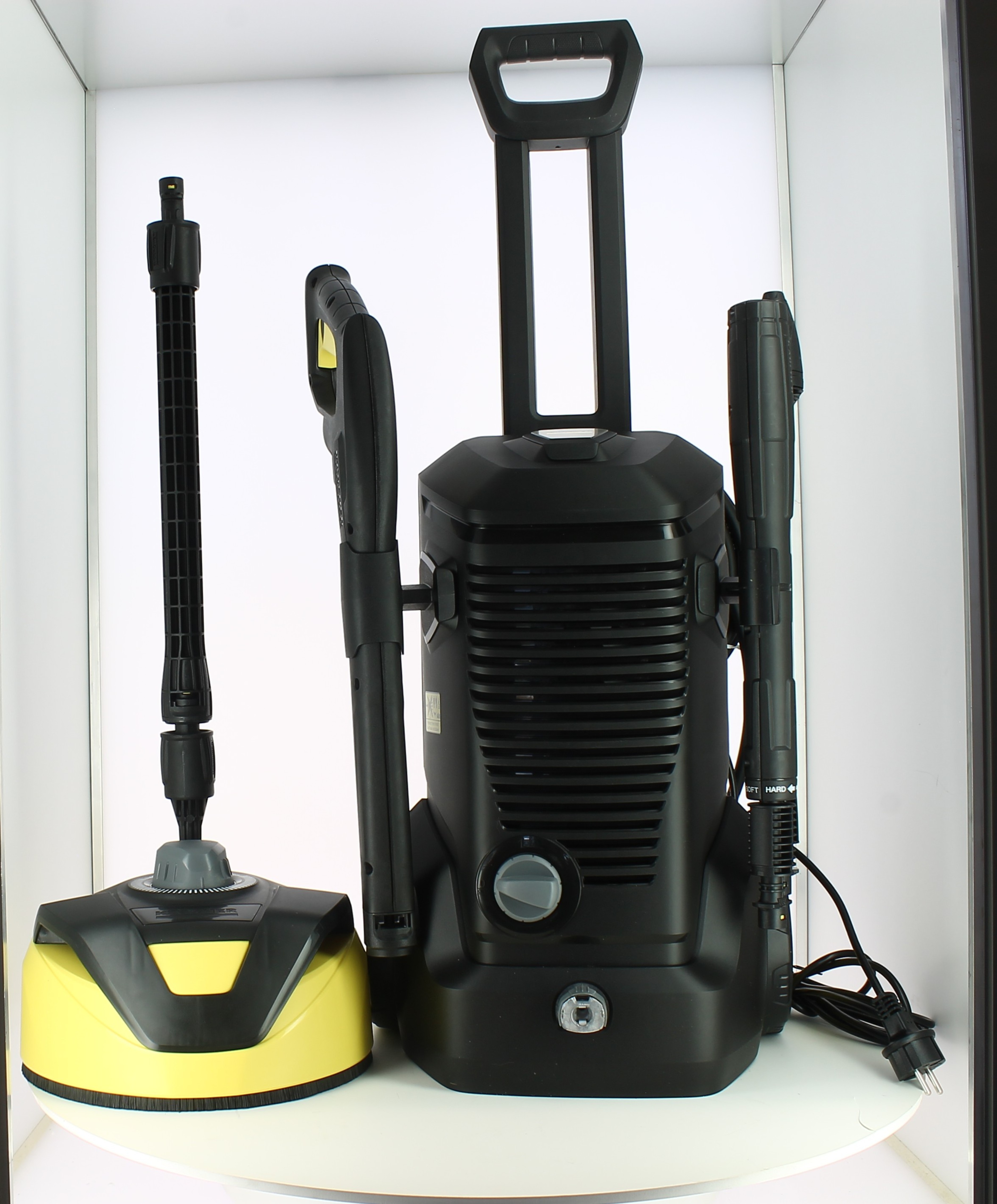 La hidrolimpiadora K 6 Black T5 está diseñada para la limpieza frecuente de vehículos y superficies exteriores, como entradas de vehículos y piscinas. Incluye una pistola y una manguera de alta presión de 8 metros, una lanza Vario Power Spray (VPS) y una boquilla de succión con chorro giratorio para eliminar la suciedad más incrustada. También incluye el limpiador de superficies T5 para limpiar rápidamente superficies más grandes. Un filtro de agua preinstalado protege la bomba de las pequeñas partículas de suciedad. La presión del agua se ajusta simplemente girando la lanza para una limpieza precisa y exhaustiva de todas las superficies, incluso las más delicadas. Todos los accesorios se pueden guardar en los compartimentos correspondientes de la máquina.