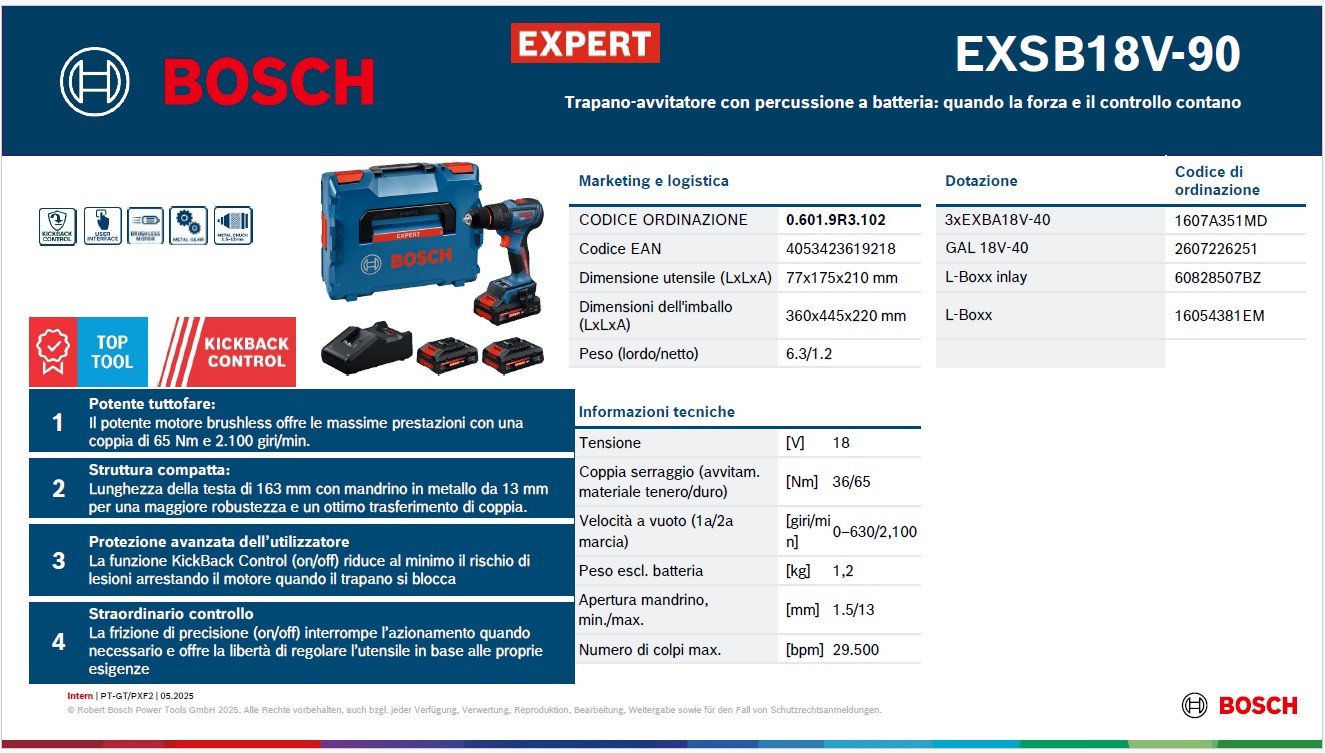 En resumen, el Bosch Expert EXSB 18V-90 es un taladro fiable, potente y muy fácil de usar. Ideal para quienes buscan una herramienta profesional y sencilla que haga un poco de todo bien: atornillar, taladrar y acompañarte en tu trabajo diario sin decepcionarte.